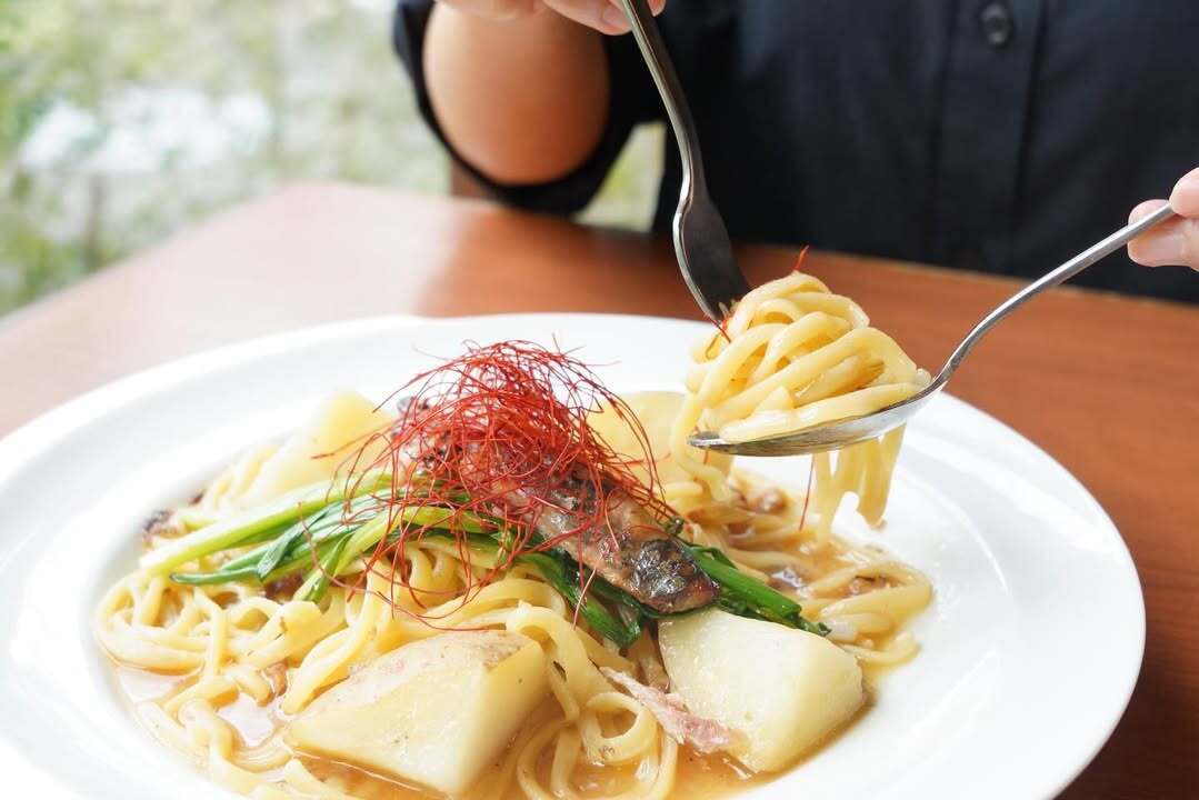 〈秋刀魚のコンフィと馬鈴薯のオイルソース〉